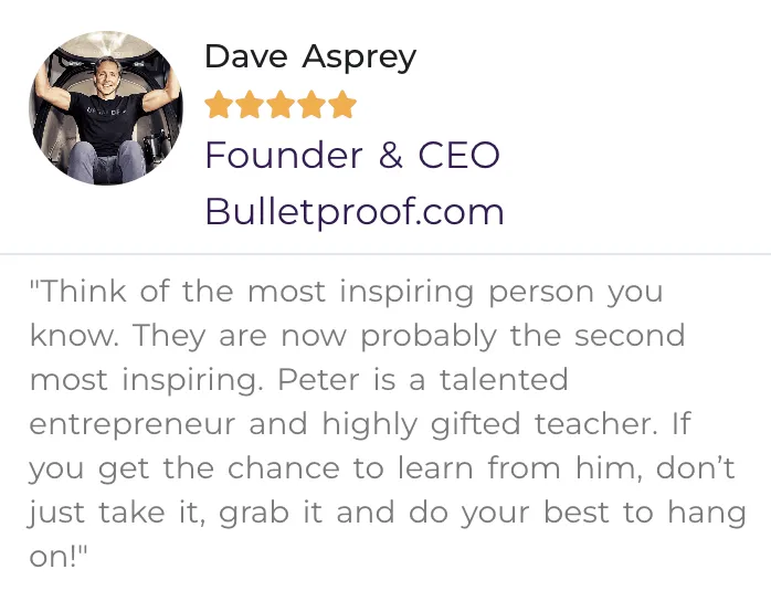 "Peter Sage's programmes have transformed thousands of lives. The Elite Mentorship Forum holds 5,000+ five-star reviews on Trustpilot – the highest-rated in the industry."